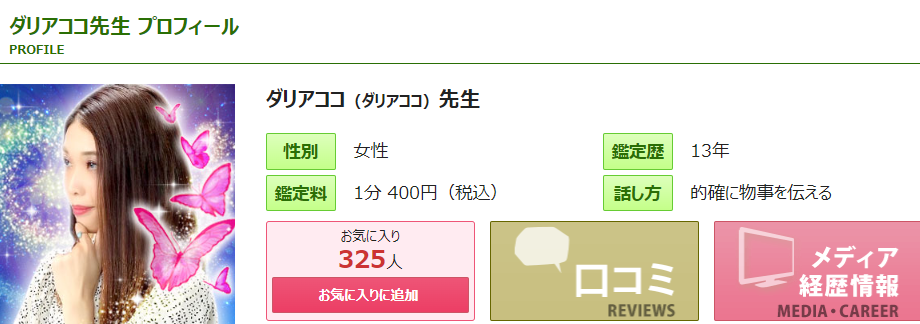 先生のプロフィールにある得意な占術と相談ジャンルをまず確認します。