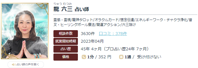 公式ページ[エキサイト電話占い 龍 六三先生](https://d.excite.co.jp/prof/4421591/)